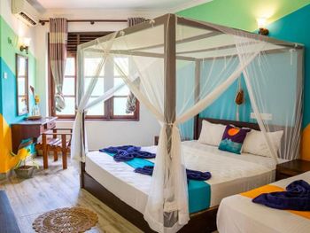 Так как Диквелла была первым местом отпуска, то специально нами был забронирван номер с двумя большими двухспальными кроватями, чтобы отдохнуть с дороги. Заселение в отель было вечером, персонал был заранее предупрежден о времени нашего приезда, но поднявшись в номер мы обнаружили чисто косметическую уборку, как будто в номере кто-то уже живет, влажное и грязное постельное белье. На просьба поменять белье был получен ответ, что у них все белье такое и оно не грязное, а просто не отстирывается, а если нас что-то не устраивает, то мы можем снять другой отель, где есть свободные места. После долгих разговоров и споров, нам удалось все-таки договориться о нормальной уборке и смене белья на чистое и, как ни странно у них получилось найти абсолютно чистое постельное без пятен и, что не мало важно сухое. Также из недостатков хочу отметить поведение сотрудников (администратора) отеля, помимо очень странного реагирования на просьбу об уборке, расчет за номер также пытались посчитать по завышенному курсу (аргументируя тем, что это курс на дату бронирования), при этом сдачу хотели дать по курсу на сегодняшний день.