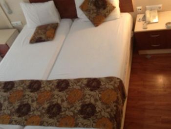 В первом номере в который мы заехали были проблемы с водой, холодная вода практически не шла. Мебель старая и разваливается. Завтраки плохие. Одеяла были маленькими, если вы спите вдвоём, то будет неудобно. Вайфай в номере ловит плохо. Расположение ужасное, рядом ничего нет, 2 пляжа рядом плохие. Ночью спустился за горячей водой, быдло сотрудник потребовал с меня 50 лир за стакан горячей воды, чего он конечно не получил. По всему отелю начали делать ремонт и заменять двери в номерах. В итоге нас попросили переехать со второго на седьмой этаж в более комфортабельный и просторный номер, но там были двери без звукоизоляции, в итоге ты всю ночь слышишь как в соседнем номере кто-то занимается сексом, моется, разговаривает и т.д. В коридоре был сломан датчик движения для света, который шёлкал всю ночь, было невозможно заснуть и нам пришлось переезжать опять в другой номер на втором этаже, где ещё не заменили двери. А потом через сутки нам пришлось переезжать опять. В итоге оказывается что все новые двери в номерах без звукоизоляции, т.е. они буквально заменили старые нормальные двери со звукоизоляцией на новые без звукоизоляции. Так что теперь во всём отеле стоят плохие железные двери. Также воду в номер дают в маленьких пластиковых упаковках по 200мл, постоянно просить воду надоест, так что легче купить самому. Чайника в номере нет, кофе не выпьешь.