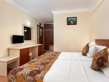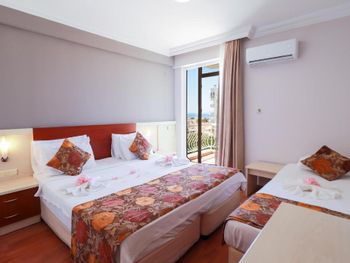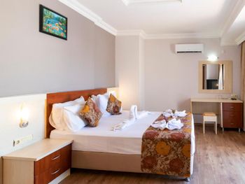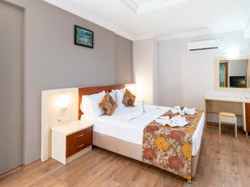 Близко к аэропорту, быстрое заселение, завтрак, в номере идеально чистое белье и удобные кровати. Вид на море, до пляжа 15 мин. Рядом все продуктовые Турции. Кондиционер отлично работал. При закрытом балконе было очень тихо.