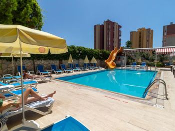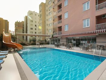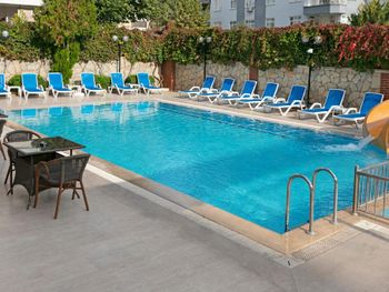 Хороший бассейн, номер с балконом, завтраки не плохие, хорошее месторасположение рядом мигрос и кафешки