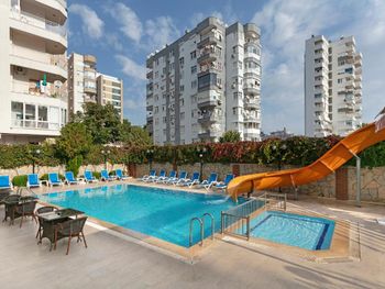 Удобное расположение. Рядом аэропорт, магазины, обменник, остановки и кафе. До моря 7 минут пешком. Уборка каждый день. Приветливый персонал. Понравился бассейн с детской горкой. Но вот в детском бассейне вода холодная. Ребенок в итоге простыл.
