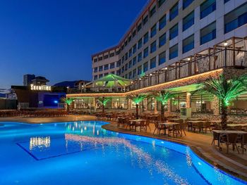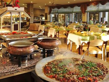 В ресторанах Syedra, Teras и Alaiye сервируются завтрак, обед и ужин в форме разнообразного "шведского стола". В ресторане Sari&Yesil с обслуживанием по меню гостям подаются избранные блюда турецкой и интернациональной кухни, а также турецкие вина. В баре предлагаются различные алкогольные и безалкогольные напитки.