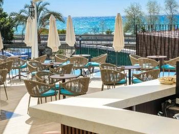 Прямо под окнами очень оживленная дорога, с другой стороны отеля замороженная стройка больших корпусов и тоже дорога, не такая оживленная, но достаточно шумная. Смена пляжных полотенец платная, что не совсем характерно для « пятерки». На пляже много бродячих кошек и собак. При всей любви к животным не очень приятно. Словом, если вы живете в городе на оживленной улице и привыкли к шуму за окном по ночам, спокойно можете бронировать этот отель Это добротная « четверка».