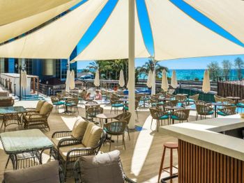 Были в октябре, пытались не пользоваться кондиционером, открывали дверь на балкон. Однако проходящее под балконами и окнами шоссе шумное, что по ночам напрягало. Вечером шумно от танцпола, работал нередко и после 23:00.