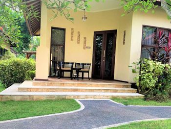 Большая площадь номера (бунгало), завтрак минимальный, но приготовлен нормально, каша вкусная. Расположение хорошее, первый отель к улице, удобно на байке.