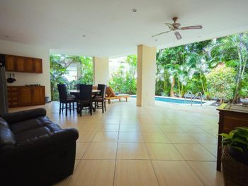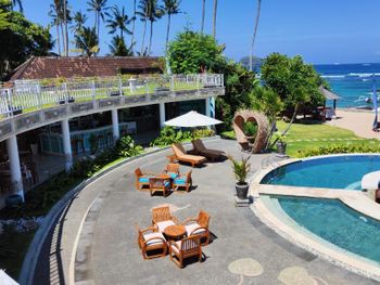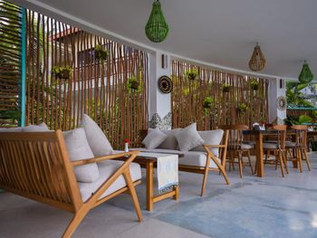 Как только отказываешься на территории отеля, накрывает ощущение, что приехал в гости к любимым родственникам или друзьям : в воздухе витает душевность и доброжелательность! Очень красивая, ухоженная территория идеального размера (до самого дальнего домика от кромки воды пара минут). Вкусная кухня на обед и ужин по меню. Интересный заход в воду : в отлив можно поплавать и даже поснорклить, так как вода ощутимо уходит и благодаря волнорезам образуется естественный бассейн без волн. Во время волн и прилива можно купаться в обычном бассейне. В шаговой доступности от отеля есть с десяток кафе на любой вкус (от классических азиатских до джаз-бара с интеллигентной публикой и более высокими ценами), пара простых массажных салонов и за углом дайв-центр (ради дайвинга сюда многие и приезжают). Пока что один раз в неделю отель приглашает для выступления танцевальный коллектив. На территории отеля свой аюрведический и СПА-центр с интересными процедурами (есть бесплатные при приобретении сразу нескольких). В отеле часто находится директор Оксана, которая с удовольствием всё расскажет и покажет на русском языке, если английский для гостя - это сложно