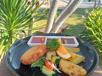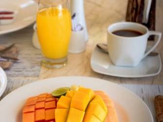 Завтрак в принципе неплохой. И к еде особо претензий нет, готовят хорошо. Персонал приветливый, территория бунгало зеленая. Море рядом, можно загорать, но не купаться. Достаточно тихое место, если не учитывать кукареканье петухов в 5 утра.