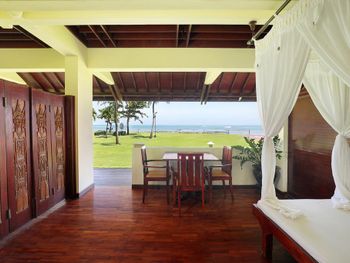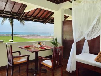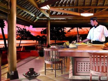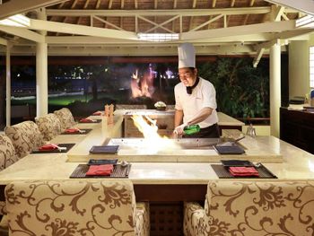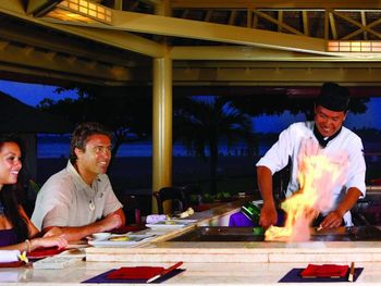 В ресторане Tepan с видом на океан подают завтрак. Блюда сервируют в помещении и на террасе под открытым небом.