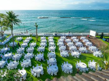 В ресторане Tepan с видом на океан подают завтрак. Блюда сервируют в помещении и на террасе под открытым небом.