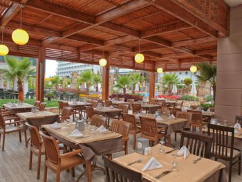 В главном ресторане подают завтрак, обед и ужин по системе "шведский стол". В отеле работают 2 ресторана с обслуживанием по меню и 4 бара. Кроме того, в послеобеденное время гостям подают бесплатный чай.