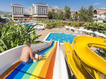 Отель Dizalya Palm Garden находится всего в 200 метрах от отдельной пляжной зоны с бесплатными шезлонгами и зонтиками. К услугам гостей номера с кондиционером и балконом, а также открытый бассейн с водными горками и детский бассейн.