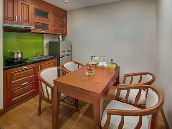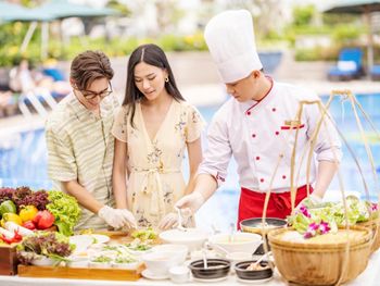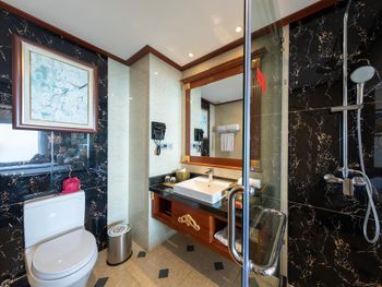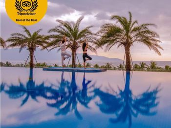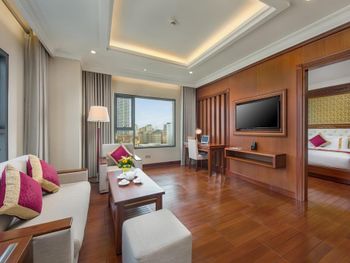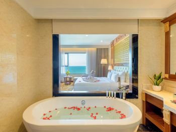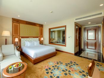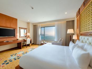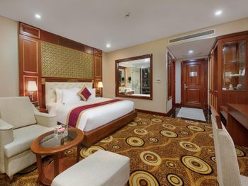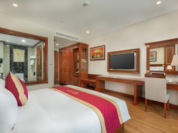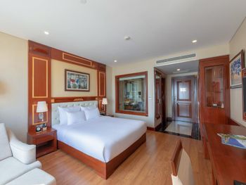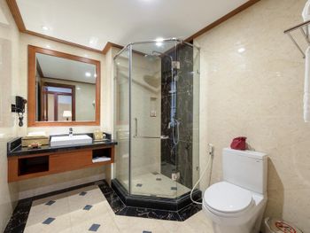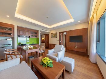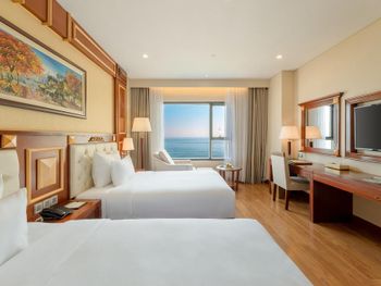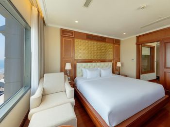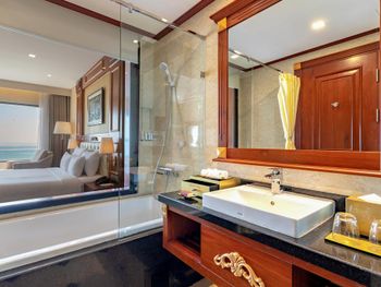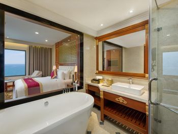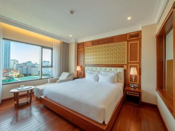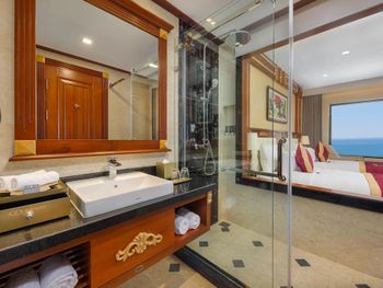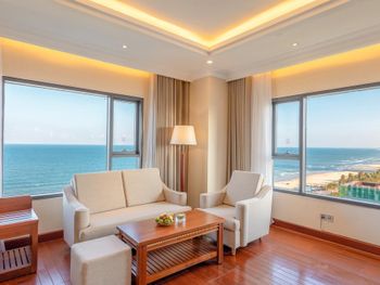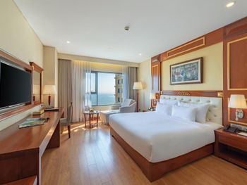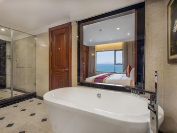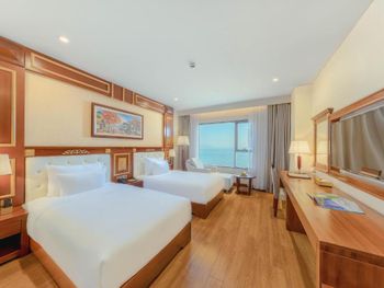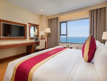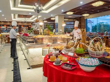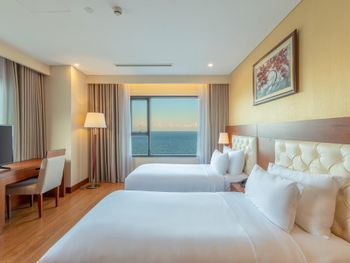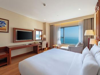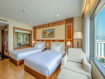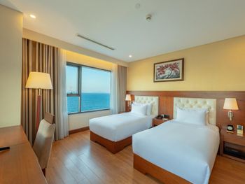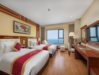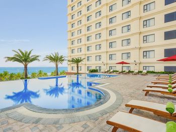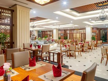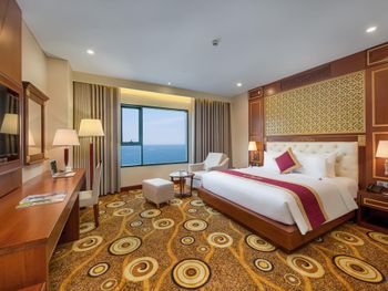 Именно то, что я ожидал от отеля. Очень хороший завтрак с азиатскими и европейскими блюдами, десертами, все блюда пополняют до самого конца завтрака. Лучше приходить ближе к концу завтрака, за час-полтора до конца, так как в самый разгар в ресторане полная посадка туристов, которые потом едут на экскурсии. Кстати, несмотря на большую загруженность отеля, с другими постояльцами мы почти не пересекались, в отеле было тихо, и мы были удивлены, когда увидели сколько народу на завтраке. Несмотря на то, что отель находится на первой линии перед морем и дорогой, в отеле очень тихо, так как перед отелем есть парковая зона. В отеле 2 бассейна. Отель идеально подходит для романтического путешествия. Вид на море просто отличный! Рядом в пешей доступности находятся очень хорошие рестораны и бары. Отличное соотношение цены и качества. Это, конечно, не 5*, но и стоимость в 3-4 раза ниже, чем у «настоящих пятёрок» в городе. Персонал приветливый, говорит по-английски. Особенно хочется поблагодарить M Hieu, Duong Giam, Anh и Ha за их помощь и содействие во время проживания.