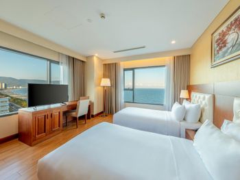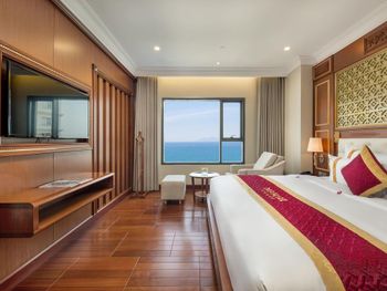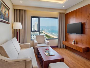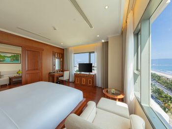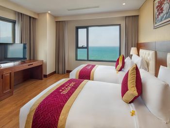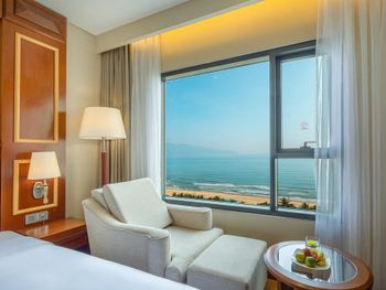 В целом, проживание нам понравилось. 1. Номер чистый (за парочкой исключений - читайте минусы), каждый день уборка и замена полотенец. 2. Приносят регулярно две бутылочки воды 330 мл, есть платный минибар (недорогой, но в супермаркете то же самое будет в 2 раза дешевле). 3 Кровать большая, постельное тоже регулярно меняли. 4. Окна выходили прямо на море, как и заказывали. Единственное, окно на ночь не открыть, так как очень шумно от местных жителей. Отель тут ничего не сделает. 5. Бесплатно можно взять велосипед, чем мы регулярно пользовались) 6. Персонал очень приветливый, всегда поможет, подскажет. 7. Завтраки очень понравились - сытные и разнообразные. За неделю проживания ассортимент совсем не надоел. Рядом с блюдами написано, есть ли в них мясо. Те, кто пишут про скудность завтраков - что для вас тогда НЕ скудность. Вариантов блюд очень много. Также всегда есть разные фрукты: местные и более привычные, арбузы, дыни. 8. Расположение, вроде, нормальное. Чтобы дойти до моря, надо перейти дорогу. 9. Есть два бассейна, но мы туда не ходили. Рекомендую кафе рядом с отелем! Bếp Cuốn Đà Nẵng. Ставлю ему 1000 звезд! Для любителей истинно вьетнамской кухни