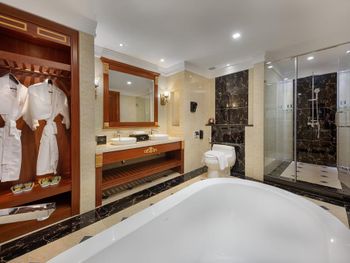 В числе удобств номеров кондиционер, гостиный уголок, письменный стол и телевизор с плоским экраном и спутниковыми каналами. В собственной ванной комнате с ванной предоставляются бесплатные туалетно-косметические принадлежности и фен.