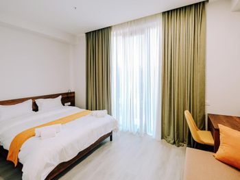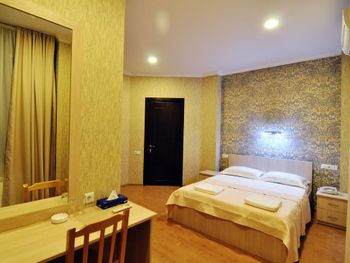 Вполне хороший отель. Понравилось все. Цена vs. Качество. В комнате была удобная кровать, диван, стол, даже холодильник. Убирались каждый день. Ремонт вроде свежий, но кое-где днём видны потертости. Есть балкон и на нем столик со стулом. Находится в 5 минутах от метро пешком или в 3 км от Старого Тбилиси (примерно 20-25 минут пешком). Завтраки шведский стол (вполне подойдет).