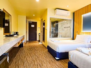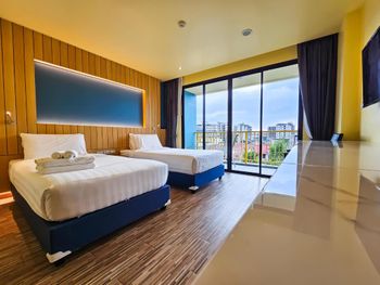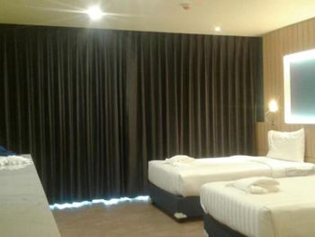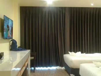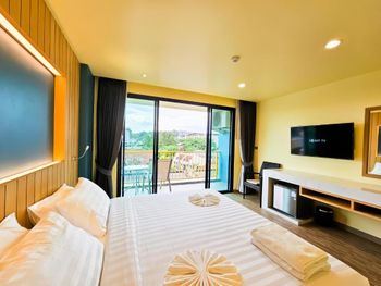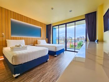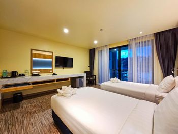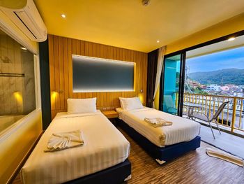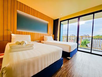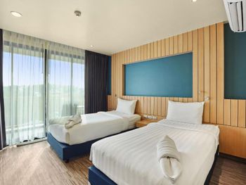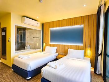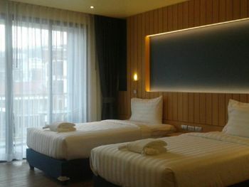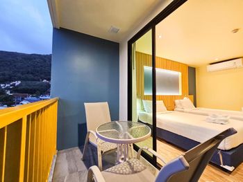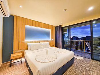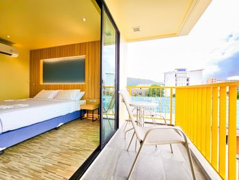 Современный достаточно новый отель близко к северной части пляжа Ката Яй, магазину 7/11, кафе, остановке автобуса в Пхукет-таун и прочим нужным городским удобствам, жили в нем 2 недели, отличный кондиционер, прекрасный дружелюбный отзывчивый персонал отеля, наличие в холле отеля микроволновки и термопода, супер бассейн на крыше и тренажёрный зал, наш номер был на 2 этаже с видом на стоянку во дворе, поэтому шумно не было, только выхлопные газы от авто изредка😜зато очень радовали поющие петухи и птички за окном)