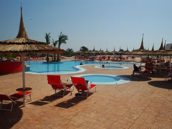 гостиница достаточно удалена от центральных развлечений, что влияет на тишину и покой (нам на радость). благодаря этому наш бассейн был практически нашим частным. на специальных машинках (таф-таф) можно доехать до пляжа, центра с аттракциями и прочее.
