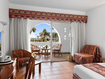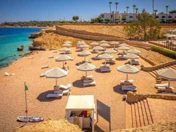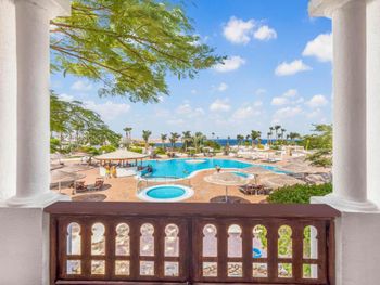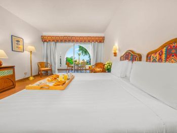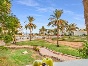 Первый отель в котором лобби бар платный. По системе все включено 3 ресторана, еда вкусная, но настолько грязно... официант в ресторане джардино на сладостях тарелкой мух отгонял, и в эту же тарелку гостям сладости ложил. В посуде есть сколы. В ресторанах Корал и Специи - на сладком столе торты и пироги, но... не порезаны, все ложками отламывают куски, через 5 минут из торта месиво, ну положите ножик! Посуда не промыта, ставят с видимыми жирными пятнами. В корал вечно нехватает ложек. По Букинг нам должны были предоставить бесплатное повышение категории номера, но нет. После 4х дней борьбы с уборщиком и жалоб, нас переселили в действительно хороший номер, с хорошей уборкой и шикарным видом. Полотенца на пляже главном, требуют замены, опять же, итальянцам дают хорошие, а ресскоговорящим гостям ужасные. Теперь вишенка на торте! Под видом привелигированных клиентов D club наседают в подписание договора. Дают в подарок One day на клубном пляже. Рассказывают красиво и про подарочную неделю в отеле и сервис rci по миру по обмену отпуска. На самом деле проживание дешевое, но питание дорогущие, все доп сервисы потом доп счетом при выселении выходят. Расторгнуть договор - ответов нигде нет.  Так заговаривают зубы, так все красиво, подумать не дают на принятие решения. Естественно, при нашем недовольстве - полный игнор. Мы заплатили 1 тысячу долларов, и не получили ничего..... А там на поток поставлен развод наших туристов. Еще один минус, никто конкретной информацией не обладает, пришли на ресепшен спросить сколь стоит де юз, чтобы подруга с другого отеля в гости приехала, сказали 250 фунтов, по приезду цена выросла в 25 долларов, даже в этом обманули. Испорчен отдых... Будьте бдительны! Очень жаль этот отель, ведь при таком шикарном пляже и море, так испортить отдых.