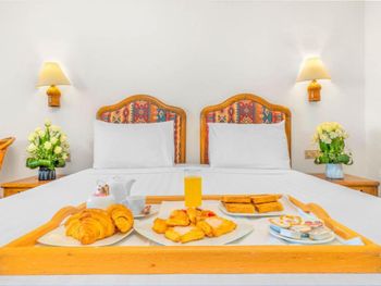 Ужасные завтраки. Очень большой отель. Таф тафы не все электрические. Постельное белье в номере ужасное. Отель старый. Требует ремонта.