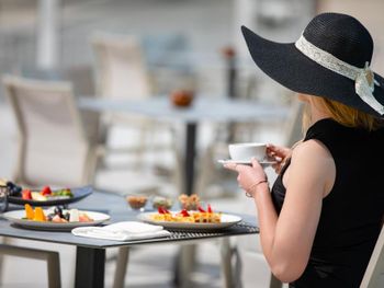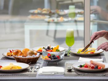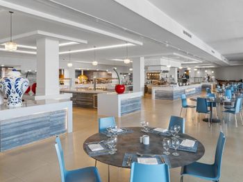 Очень приятная команда работает в ресторанах- улыбаются, готовы помочь, играют с ребенком, поварам спасибо за вкусную еду. Всего 6 ресторанов. По утрам и в обед работает два ресторана. На ужин открыты все шесть. В тайском на ужин - красная рыба на гриле, креветки на гриле, курица в кисло-сладком соусе очень вкусная, яичная лапша очень вкусная, рис. В ля паэлье вкусная паэлья с морепродуктами, также была с говядиной, с курицей и вегетарианская. В Кулине по утрам - свежевыжатый сок (из апельсинов и из дыни) , сёмга на завтрак, вообще большой выбор еды - каши (3 вида), яйца в различных вариациях (омлеты, глазунья, варёные), много сыров, очень много выпечки, блины, вафли, сосиски (куриные натуральные), пудинги, йогурты. Безумно вкусные булки во всех ресторанах, вкусный кофе в лобби баре.