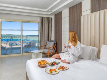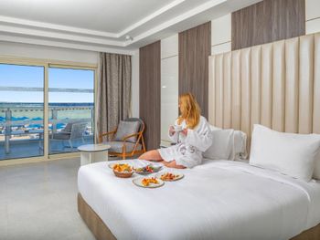 Хотим выразить большое спасибо нашему менеджеру от Booking Махмуду. Нам бесплатно при заезде в отель улучшил уровень номера. Номер был огромным и близко к морю. А так же Махмуд позаботился для нас о позднем выезде.