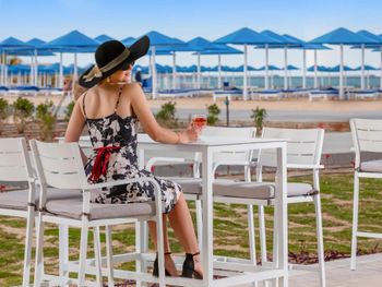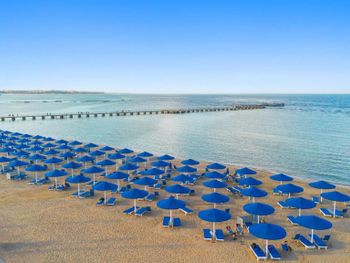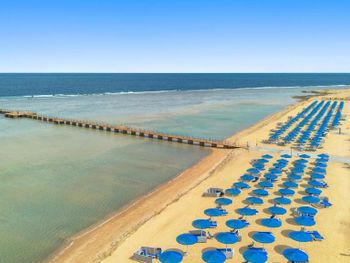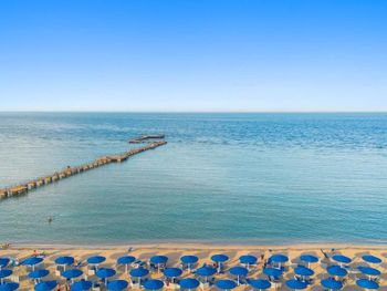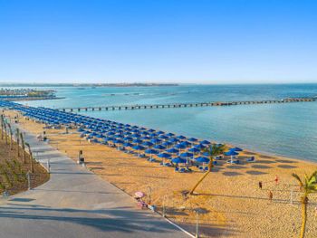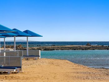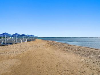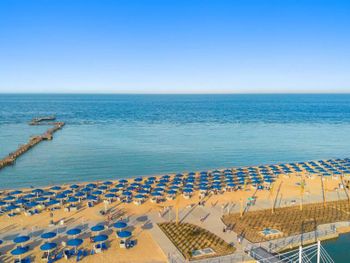 Пляж ухоженный, чистый, с удобными лежаками и защитой от ветра. Пляжные работники всегда готовы помочь — передвинуть лежак, что-то подсказать, всё быстро и доброжелательно.