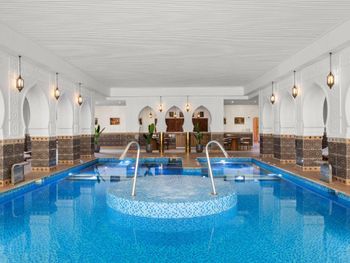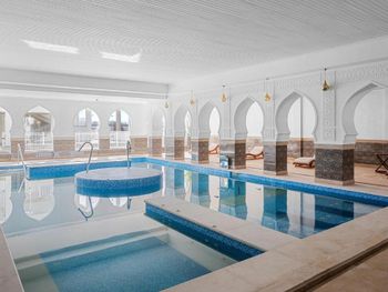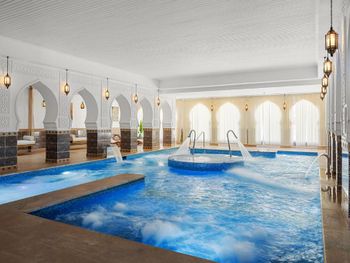 Несколько подогреваемых бассейнов, много шезлонгов, приветливый персонал у бассейнов.