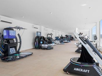 Подогреваемый аквапарк, много подогреваемых бассейнов. Вода в бассейне действительно была теплая, было очень комфортно купаться. Большой зал с VR играми. Всем хватало время поиграть. Велосипеды, катамараны.