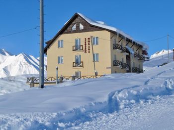 Современный отель Расположение лучшее в Гудаури: самый близкий к подъемнику 1 минута, до супермаркета 5 минут, пол минуты до кафе на склоне с вкуснейшим глинтвейном и не только, и своего проката, удобное расположение по всем направлениям достопримечательностям, такси по курорту и до Тбилиси. В номере было чисто, тепло, везде всё свежее, шампуни гели тапки полотенца, всё белое и менялось регулярно, убирали номер каждый день. Номер уютный, есть чайник, шкаф, тумбочки, ночники, стол, стулья, кресло, тв, фен, матрасы удобные и новые, на полу офигенный ковёр, балкон с шикарным видом. Дизайн номера приятный. Вход в отель с двух сторон со склона и центральный, удобно заезжать в конце катания прямо со склона на уличный балкон который соединен с горой, с которого можно либо войти в отель, либо спуститься вниз по специальной лестнице в хранилище сушилку для лыж и досок. На первом этаже приятный светлый ресторан, туалеты м/ж, ресепшн, уютный бар с камином и диванами, вай фай ловит везде. Отель чистый свежий с приветливым персоналом. Также отдельно есть кальянный зал с камином и музыкой. Вообщем вечером можно хорошо посидеть любуясь прекрасными горами, поесть выпить, до поздна работает кухня ресторана. Еда вкусная, а главное сытная, порции впечатлили, по сравнению с другими заведениями, оказалось питаться вкуснее и выгоднее в своем ресторане. Разнообразие кухни любое мясо рыба салаты десерты и т д. Любой качественный алкоголь. У нас были завтраки, всего не перечесть, очень свежие всегда местный творог сыр очень вкусно, любые мюсли молоко сырники блинчики джемы шоколадные пасты мёд фрукты амлеты сосиски беконы колбаса пюре каша паста венские сосиски овощи маслины оливки, я просто объедался. Вообщем накормят как следует. Вообщем отдых удался, впечатления следующие: атмосфера приятная спокойная никто не напрягает, живешь как в очень большом уютном доме. Рекомендую!