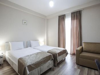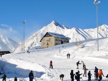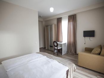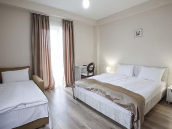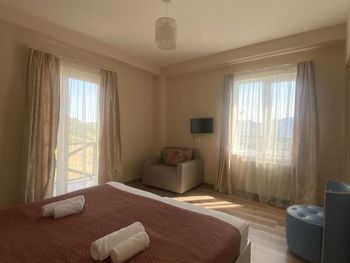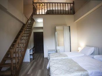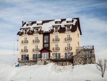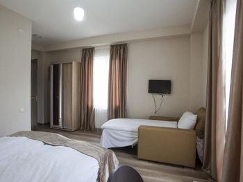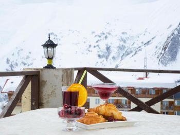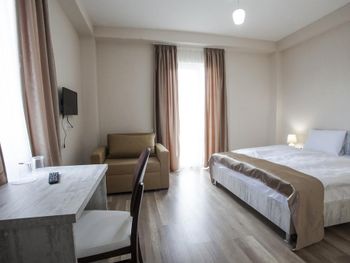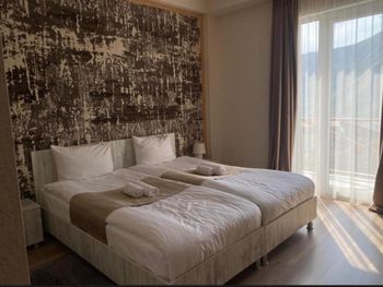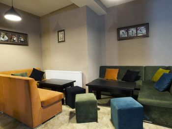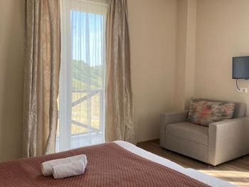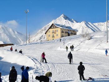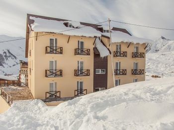 Современный отель Расположение лучшее в Гудаури: самый близкий к подъемнику 1 минута, до супермаркета 5 минут, пол минуты до кафе на склоне с вкуснейшим глинтвейном и не только, и своего проката, удобное расположение по всем направлениям достопримечательностям, такси по курорту и до Тбилиси. В номере было чисто, тепло, везде всё свежее, шампуни гели тапки полотенца, всё белое и менялось регулярно, убирали номер каждый день. Номер уютный, есть чайник, шкаф, тумбочки, ночники, стол, стулья, кресло, тв, фен, матрасы удобные и новые, на полу офигенный ковёр, балкон с шикарным видом. Дизайн номера приятный. Вход в отель с двух сторон со склона и центральный, удобно заезжать в конце катания прямо со склона на уличный балкон который соединен с горой, с которого можно либо войти в отель, либо спуститься вниз по специальной лестнице в хранилище сушилку для лыж и досок. На первом этаже приятный светлый ресторан, туалеты м/ж, ресепшн, уютный бар с камином и диванами, вай фай ловит везде. Отель чистый свежий с приветливым персоналом. Также отдельно есть кальянный зал с камином и музыкой. Вообщем вечером можно хорошо посидеть любуясь прекрасными горами, поесть выпить, до поздна работает кухня ресторана. Еда вкусная, а главное сытная, порции впечатлили, по сравнению с другими заведениями, оказалось питаться вкуснее и выгоднее в своем ресторане. Разнообразие кухни любое мясо рыба салаты десерты и т д. Любой качественный алкоголь. У нас были завтраки, всего не перечесть, очень свежие всегда местный творог сыр очень вкусно, любые мюсли молоко сырники блинчики джемы шоколадные пасты мёд фрукты амлеты сосиски беконы колбаса пюре каша паста венские сосиски овощи маслины оливки, я просто объедался. Вообщем накормят как следует. Вообщем отдых удался, впечатления следующие: атмосфера приятная спокойная никто не напрягает, живешь как в очень большом уютном доме. Рекомендую!