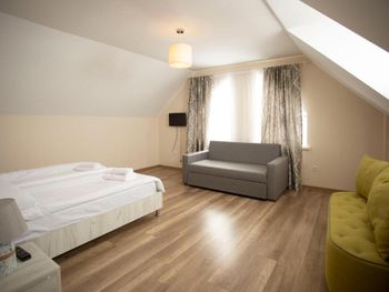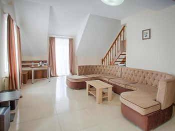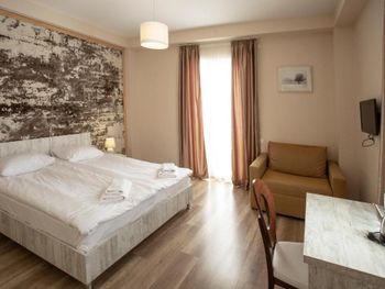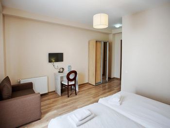 1. В номере холодно (на это обращают внимание все жильцы!). Батарея еле-еле теплая, но позднее начали топить лучше, но это все равно не спасает, так как из окон задувает. 2. Музыка в отеле долбит до 3х часов ночи 3. Сауна есть, но это отдельное здание, т.е. нужно идти через улицу, стоимость не дешевая (80 лари/1 час), считаю за такую цену и сервис должен быть на все 100%, то есть сауна должна быть разогрета, дверь в парилку должна закрываться 4. Питание отличное - все вкусно, но не могут определиться по какой системе они работают: HB (завтрак+ужин) или B (завтрак), а ужин по меню за дополнительную плату. У тех гостей, у кого был оплачено HB, предлагают ужин из расчета 30 лари на человека, вроде идея отличная, но тогда в меню (логично) должны быть практически все позиции, а не так, что этого нет, этого тоже нет и этого тоже нет, или мы вам приготовили ужин не по меню, но тогда спрашивается, а зачем меню? 5. Цены для гостей на бар различаются, например, для одних (одно и тоже вино!) стоит 85 лари, а для других 70 лари. :-| 6. Есть лыжное хранилище, к нему с улицы ведет лестница (вниз!), на которой очень часто лед, т.е. упасть элементарно