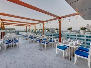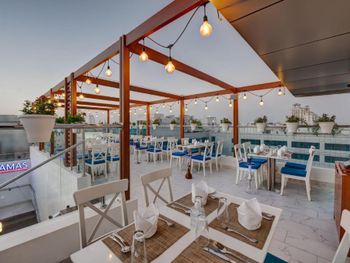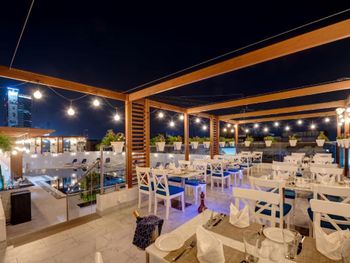 Авторский ресторан Yamas специализируется на греческих блюдах. Предусмотрена доставка еды и напитков в номер по меню.