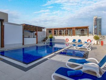 Отличный отель без претензий по соотношению цена-качество. Рядом с метро (а в Дубае это важно). Хороший бассейн и тренажерка. Номера просто огромные и чистые. По ТВ одни арабские каналы. Есть паб и ресторан.