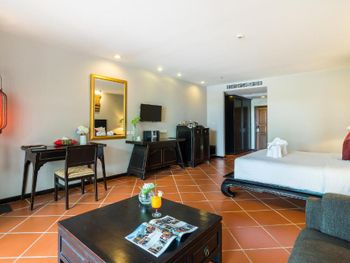 В курортном отеле Dor-shada предлагается размещение в оформленных в современном тайском стиле номерах с собственным балконом и просторной гостиной зоной с диванами. В числе прочих удобств — холодильник и сейф. К услугам гостей собственная ванная комната с ванной и феном.