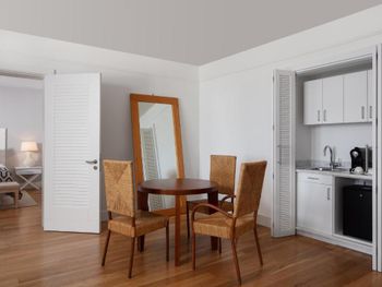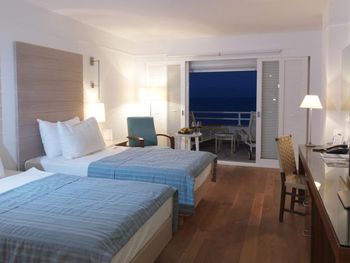 1. В номере не предусмотрены принадлежности для чая и кофе, тогда как впечатление от нахождения на балконе с потрясающим видом на море с чашечкой кофе или чая в руках было бы более приятным. 2. Одна из прикроватных тумб была сломана: сломана ручка и сам выдвижной ящик. 3. В номере не предусмотрены халаты. 4. В ванной комнате были перебои с напором воды, поэтому принимать душ приходилось с осторожностью. 5. Замок балконной двери был сломан (дверь не закрывалась). 6. На пляж возит автобус 1 раз в час (время в пути 15 мин.). Необходимо отметить, что некоторые водители (2 из 3) автобуса-шатла, считают себя «высококвалифицированными», подвергали опасности жизни и здоровье пассажиров. На себе ощутили такую «специфическую» манеру вождения дважды, были свидетелями "мини-аварии" при которой было разбито левое зеркало автобуса-шатла. 7. Справа от отеля стройка.