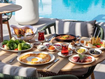 Ресторан отеля Doria Bodrum выходит окнами на бассейн и специализируется на традиционных турецких блюдах и средиземноморской кухне фьюжн. Отель также располагает уютным лобби-лаунджем и кафе у бассейна Club House, где подают легкие блюда.