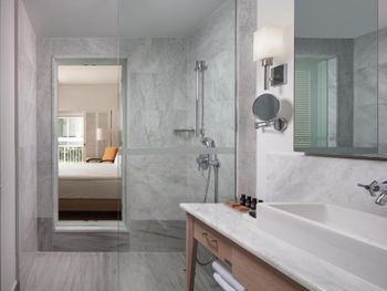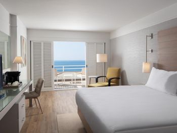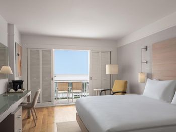В этот раз обслуживание в самом отеле было на низком уровне. Все началось с заселения. Бронировали 2 номера, просила поснлить рядом, поскольку во 2-м номере дети. Нас заселили в разных концах отеля, в разные корпусах, без вида вообще, на нижнем этаже. Хотя бронировали номера с видом на море. Поменяли еле еле один номер. В номере 4004 было грязно, очень, в особенности в ванной, вся сантехника в каких-то жирных пятнах, на мебели подтеки грязные. Номер там находится где-то в углу, возле комнаты персонала, и сттбы пройти к номеру, надо пройти через сложенные кровати и тележки персонала. Просила на рецепшне произвести дополнительную уборку, ничего не сделали, хотя перечислила все моменты. Терассу за 3 дня не убирали ни разу! Лежаки на терассе грязные, опавшие листья и ветки повсюду. При заселении в прошлом году были фрукты, снеки, конфетки. В этом году ничего из этого, никаких комплиментов. Персонал отеля в целом вялый! Коые на завтраке никакое! Если бы не пляж, который расположен в чудесном месте, отель больше не стоит моего внимания! Разочаровал по комфорту. Хотя задумка, коныепция отеля нравились очень изначально.