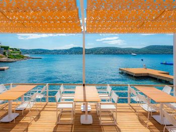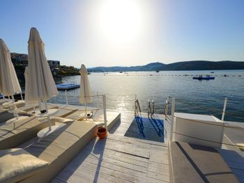 1. Номер и вид с балкона номера. 2. Хорошая качественная еда с нормальными порциями. 3. "Пляжная" зона (гора + понтон + пирс). 4. Зона для отдыха оборудована всем необходимым: удобными лежаками, зонтами и небольшими столиками.