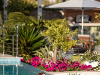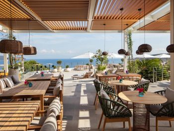 Расположение на горе, вид из номера классный, мало проживающих, нет толп людей нигде) Рядом супермаркеты/аптека Отель больше для взрослой аудитории без маленьких детей Хорошая музыка на пляже. Пляж норм, вода чистая, дно - водоросли и камни. Но нам это не мешало, мы плавали на глубине)