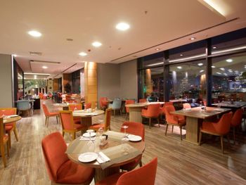 В ресторане Sumac Grill Restaurant and Terrace сервируют свежеприготовленный завтрак «шведский стол».