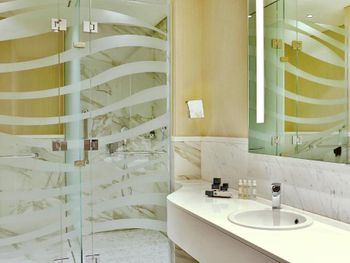 не было халатов, тапочек, одноразовых банных пренадлежностей. все пришлось просить принести. при заезде ночью- в лобби был какой-то посттусовочный хаос с сомнительными людьми, ощущение не отеля, а борделя.