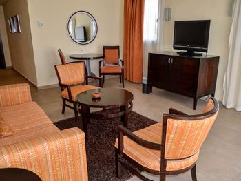 Junior Suite (I линия) - 41 м², макс. 2+1 чел. | двуспальная кровать, зона отдыха с диваном, ванная комната