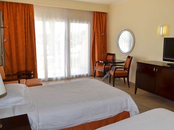 Deluxe Pool View (II линия) - 41 м², макс. 2+2 чел. | кровать king-size/ 2 twin, ванная комната с душевой/ванной, дополнительное место – мобильная односпальная кровать или софа (при наличии в номере). При размещении 2+2 предоставляется только одно дополнительное спальное место