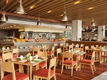 Завтрак качественный: йогурты, яйца в любом виде приготовления, горячие блюда, фрукты, сыры, соки, хорошая выпечка, безглютеновый хлеб и детский стол. Часть столов для завтрака стоит на улице под пальмами, и если день не жаркий, то кушать там очень приятно.