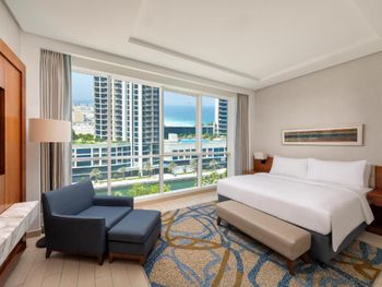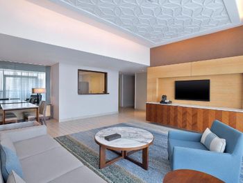 Понравился огромный , просторный , с панорамными окнами люкс. Большая ванная комната, тихий кондиционер, интернет хорошо работал даже в дальних комнатах. Завтрак и приятный персонал в ресторане.