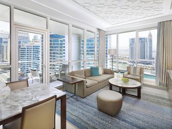В распоряжении гостей этого фешенебельного отеля класса люкс частный пляж, пляжные беседки и собственный бассейн. Во всех люксах есть отдельная гостиная и собственный балкон с видом на Аравийское море или пристань для яхт Дубай-Марина.