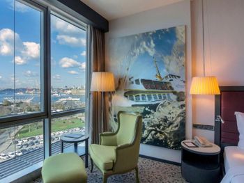 Современный отель, номер большой с отличным видом и ванной в номере. Бассейн с баром на крыше, хорошие очень завтраки и приветливый персонал. Шеф повар лично всех приветствует на вкусных завтраках. Расположен недалеко от порта , метро и туристических мест. От порта очень удобно добираться до Галатского порта.