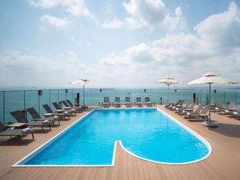 Отдыхали вдвоем, при выборе исходили из наличия бассейна под открытым небом. Чистый, ухоженный бассейн на крыше с полотенцами и лежаками, с 07:00 утра до 19:00, уходили позже - никто не выгонял ))) Сделали апгрейд номера (добавили вид на море), угостили печеньем, взяли и вернули депозит 100 долларов. Завтраки не брали, кушали в городе.