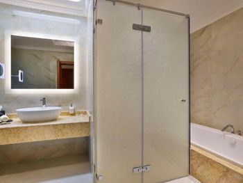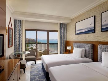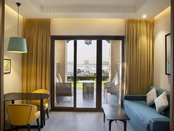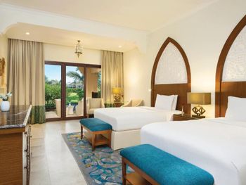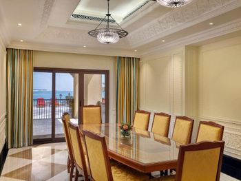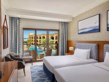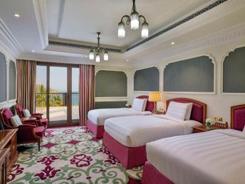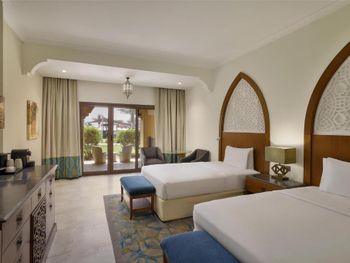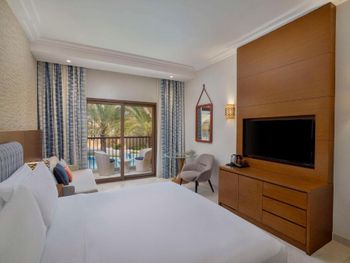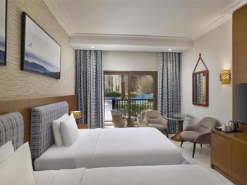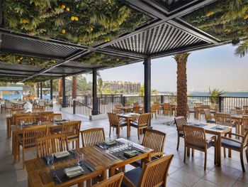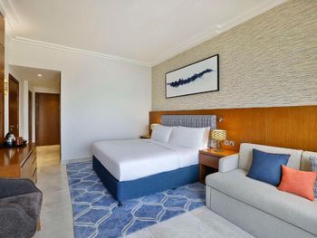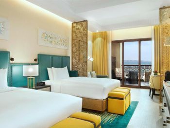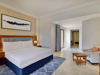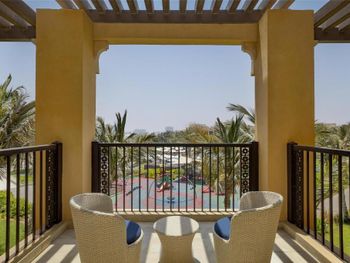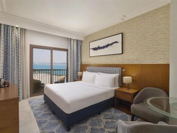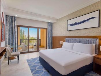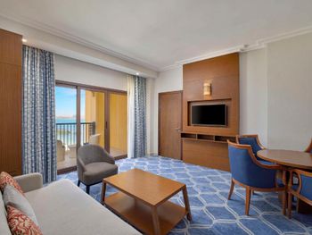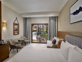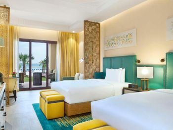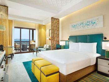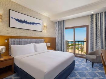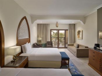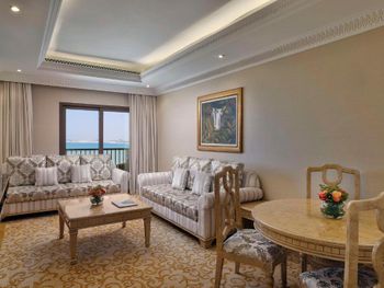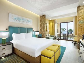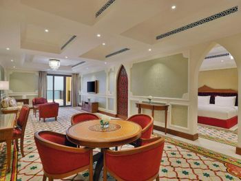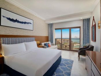 В моем понимании Отель слабо соответствует 5 звёздам: в номере на Мебели пятна непонятного происхождения, Мебель поломана, под кроватью не полесосят месяцами ( хотя ежедневная Уборка достояна- ощущение чистоты и желание оставить на чай) белье может быть с дырами. Полотенца чём-то воняют, пляжными брезговали вытереться, только стелили на лежаки. Сантехника и Электрика может не работать. Все эти недостатки приходилось решать методом пенковой тяги персоналу. А хотелось бы это время тратить на отдых. Номер брал самый дорогой в Бай клубе на граунд этаже ( это значит Личный прямой выход на пляж) в итоге на моей террасе постоянно курили какие-то непонятные люди и заглядывали в номер. В итоге поменял на такойже на 3 этаже. Все недостатки в другой комнате были такие же☝️Потому рекомендую брать самый дешёвый номер из наличия ориентир 6000 рублей в сутки, мой стоил 18000 рублей в сутки. Абсолютно не стоит того. Зато все вокруг было замечательно. Море именно для детей, вода практически стоячая. Куча живности, рыбы большие, маленькие, медузы зеленые, синие, крабы отшельники и тд. Мы ездили с 10 по 24 ноября 18 года. Сначала море было градусов 28 по Цельсию, в конце отдыха градусов 24. При всех минусах Отель новый Года 4 ему, современная подсветка, дизайн комнат с европейской легкостью с восточными мотивами. Мы брали только номер без еды. За деньги еда скажем так не соответствует уровню, малое разнообразие блюд ( одно, два мяса. Каждый день одно и тоже) в общем ресторан надоел. Кушали в итальянском Бурато ( забегаловка в аль Хамра моле ) ехать 7 минут на такси. Ещё раз повторюсь рекомендую семьи с маленьким ребёнком, все включено или зрелой паре. Курортный отдых у моря не вставая с лежака 👍