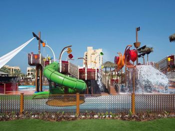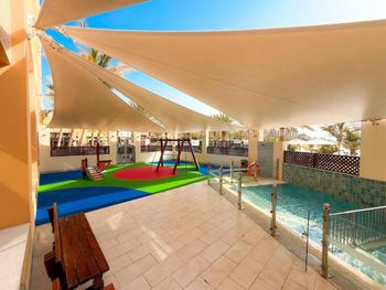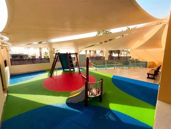 Замечательное расположение, на отдельной косе, выделенная линия пляжа волны практически отсутствуют, купаются самостоятельно даже годовалые дети. Отель подойдёт семье с детьми и людям зрелого возраста. Много анимации, для детей отдельная комната, два детских бассейна, различные автоматы, лазилки, горки, батут. Отдельный детский аквапарк, катался на горках я ( здоровый мужик под 100 кг) Ребенок испугался🤣. И обратите внимание что лучше брать все включено. Один день на человека, завтрак, обед и ужин (500аед это около 9500 рублей) дети до 6 лет бесплатно, старшие со скидкой. Детское меню это нашесты, картофель фри и тд.